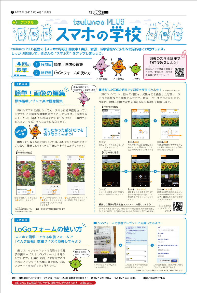このページでは県広報紙「ぐんま広報」に折り込みの季刊紙、tsulunos PLUS(ツルノスプラス)で紹介したスマホ活用の基本情報をまとめています。