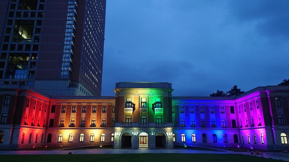 LGBTQの人権擁護・啓発を目的にライトアップを行います。6色(赤、橙、黄、緑、青、紫)のレインボーカラーは性の多様性のシンボルとされています。