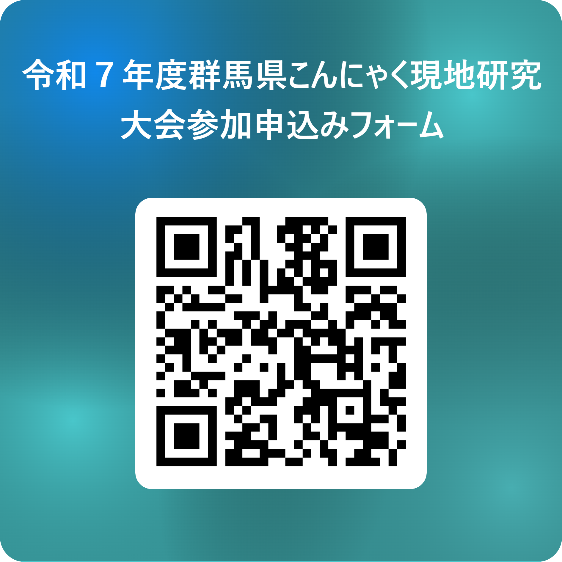 以下のURLまたは二次元コードからアクセスし、表示される令和7年度群馬県こんにゃく現地研究大会参加申込みフォーム<外部リンク>に沿って必要事項をご入力ください。
