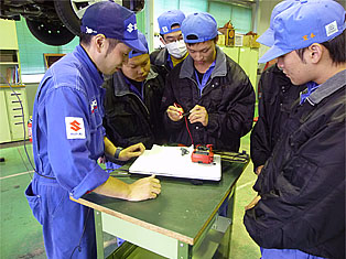 11月11日に行われた(株)スズキ自販群馬様による技術講習では、座学による衝突被害軽減システム(自動ブレーキ)やハイブリッドシステムなどの解説から始まり、実際の車両を用いての外部診断機による故障診断の方法など、最新の整備技術をたっぷりと学ぶことができました。また、指導に来て頂いた方は、現場の最前線で働く整備士であると共に当校の卒業生でもあるため、就職してからの様子や仕事のやりがいなど気軽に話ができたようで、自分の将来像をイメージして希望を膨らませていた様子でした。