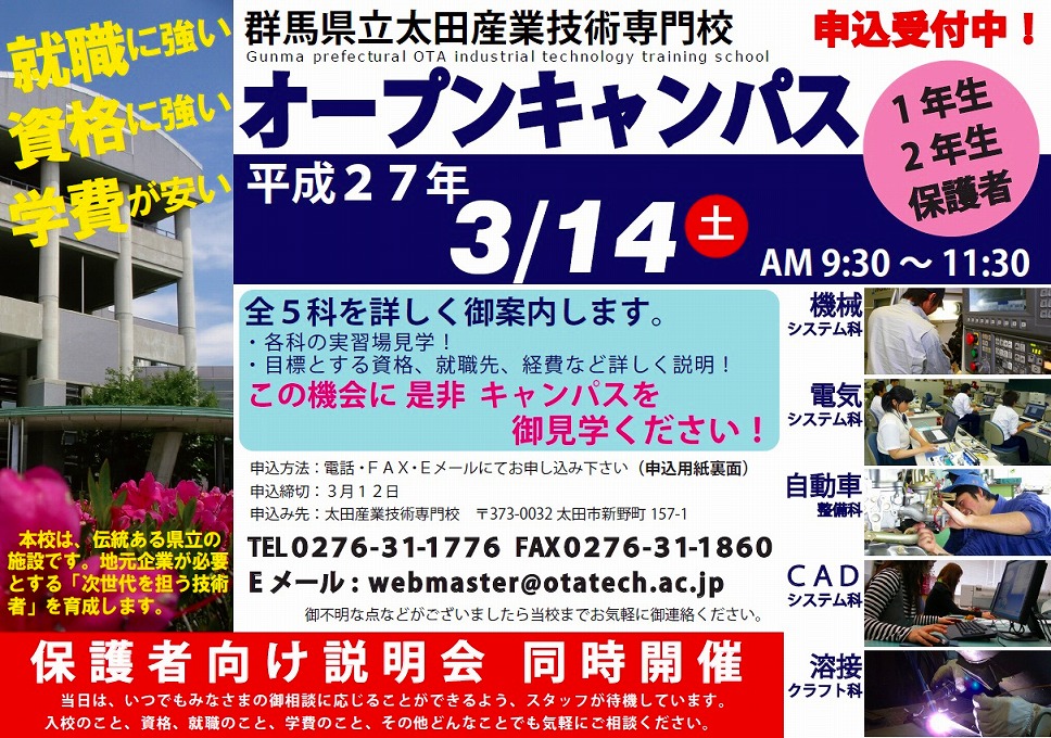 お知らせ | 群馬県立太田産業技術専門校(2013/10/29~2015/3/16)