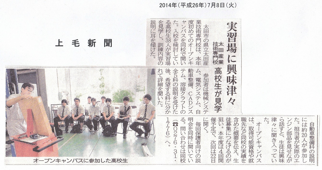 上毛新聞にもオープンキャンパスの模様が紹介されました