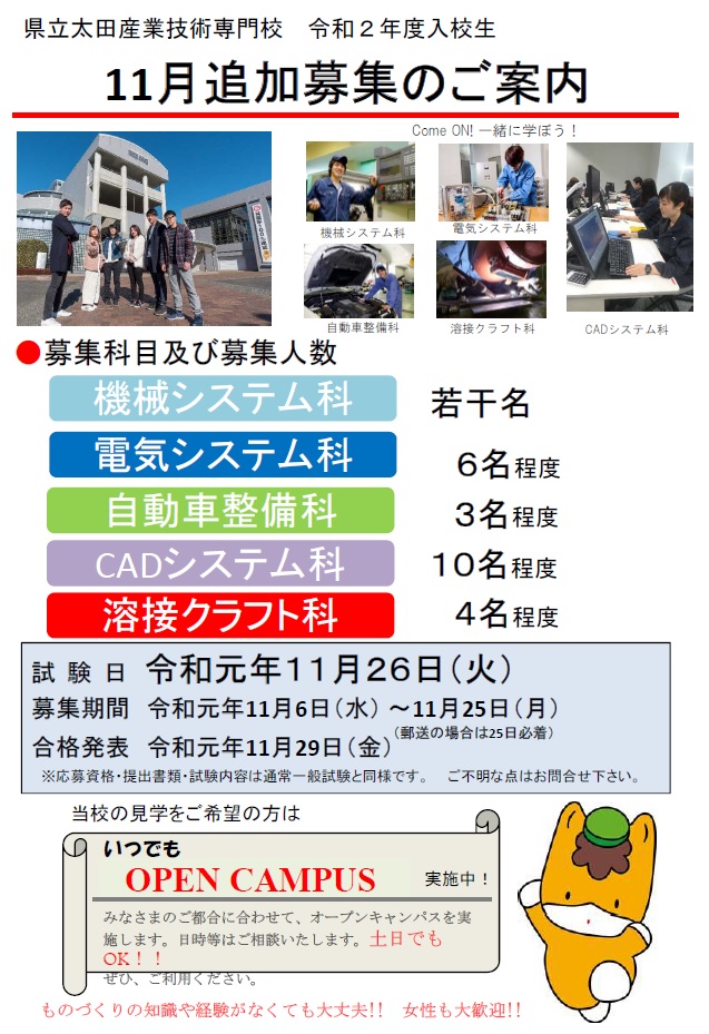 お知らせ | 群馬県立太田産業技術専門校(2019/4/25~2019/11/6)