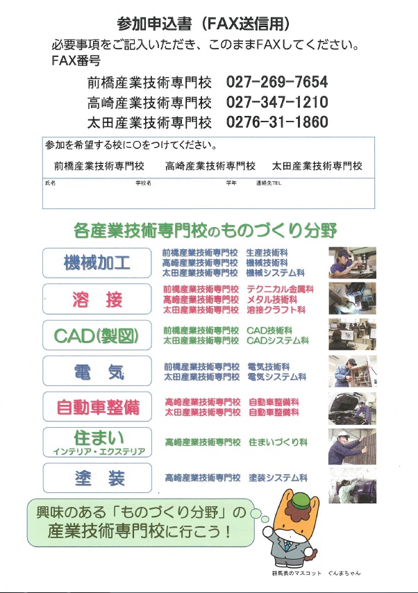 お知らせ | 群馬県立太田産業技術専門校(2018/12/27~2019/4/8)