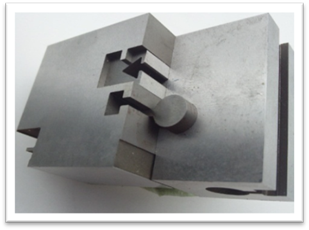 ワイヤ放電加工とは、加工する金属に電極を近づけて稲妻を飛ばし、金属を溶かして加工する手法である。ワイヤ放電の電極線は通常0.2ミリメートルのものを使用するが、松井さんは0.1ミリメートルから0.07ミリメートルの髪の毛程度の電極線を使用し、部品を加工する。これほどまでに細い電極線を使いこなすのは至難の業であり、これができる技能者は非常に少ない。加工で培った知識と経験から、一眼レフカメラに使われるシャッター羽根、絞り羽根の高精度型組込みも行っている。