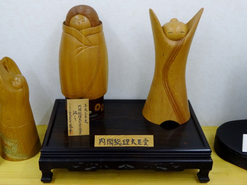 「みなさんが温かい気持ちになるような、みなさんに好かれるような作品をたくさん残していきたい。」と語る青木さんは、日本画を基礎とした創作彫像こけしの技術を確立し、すべて手作業で木地から選び、何十もの工程を経て作品を仕上げる。日本画特有の「気品、優雅、優しさ、温もり」などを生み出す技法に卓越している。青木さんの手から生まれた作品達は全国こけし展や群馬県こけし展において内閣総理大臣賞4回、経済産業大臣賞12回、農林水産大臣賞6回、文部大臣賞2回、運輸大臣賞2回、群馬県知事賞12回、渋川市長賞7回など数多く受賞している。