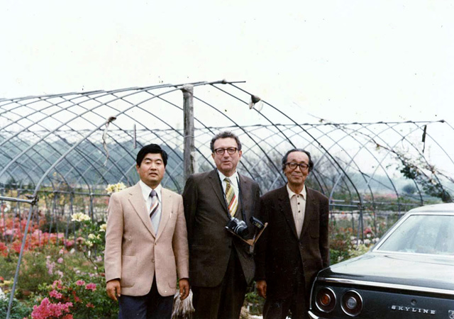 大学を卒業後まもなくして父の経営する熊倉農場に入った熊倉さん。野菜作りや蘭の栽培に取り組んだ後、館林市にある県立つつじが岡公園にツツジを卸すようになった。来園する人の中には外国から来た人も多く、よくメモを取っていたという。「大きさも色も形も様々なツツジの名前をそれぞれ聞かれたが、我々は赤や紫や絞りと呼んでいただけで正式な名前を知らなかった。『プロなのになぜ分からないのか』と言われ、なるほどその通りだと思った」。それを機に熊倉さんは仕事の傍らツツジについて猛勉強を始め、母校の大学へも通った。そこで“生涯の師”と仰ぐツツジ研究の第一人者で元東京大学教授・(故)山崎敬先生を紹介された。つつじが岡公園や東京の名勝・六義園など様々な場所を研究して回り、ツツジについて共同著書も二冊執筆した二人。これらの本は海外で多く求められたという。「家族ぐるみの付き合いをさせてもらえて幸せだった」と振り返る。