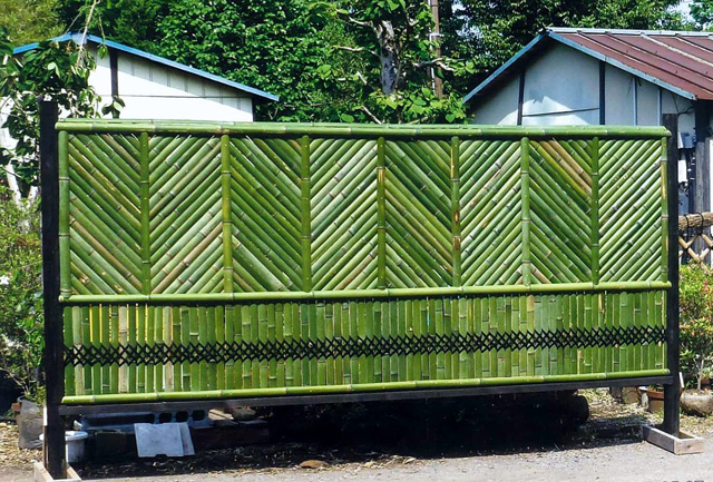 大泉高校での創作竹垣製作 左(水色の作業服):熊倉さん
