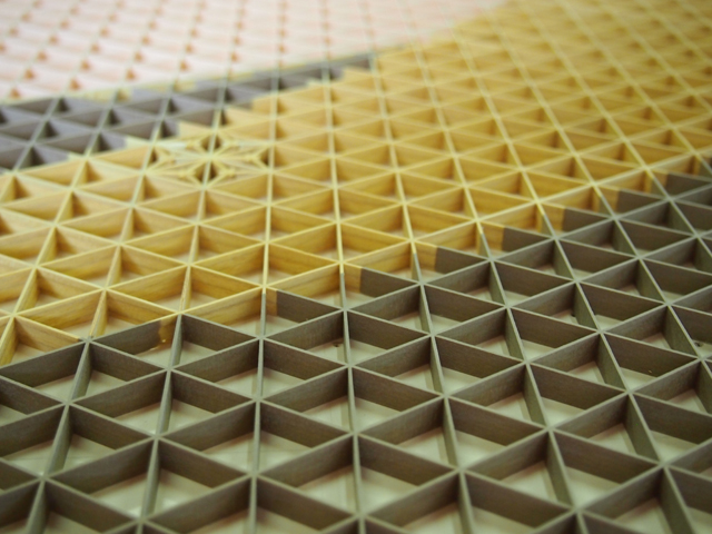 そんな高田さんだが、新境地を切り開こうと挑んだRの組子では最大の挫折を味わった。Rの組子の技能を持つ職人は全国に何人もおらず、誰からも教えてもらうことができずに3度失敗し一か月悩み通した。「4度目完成しなかったら廃業しようと思った。これが出来なかったら続けても意味がないと思った」と、工房で一人涙した苦闘の日々を振り返る。その後、最初に思いついたアイデアを再び実践したことが功を奏し、完成させることが出来た。「作品に生き方が出る。一番最初に思いついたことが一番いい。迷ったら駄目」。生き方そのものを見直すきっかけになった。