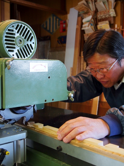 戸や障子などの建具の製造を一筋に手掛け40年以上となる高田年三さん。中でも釘を使わずに木を組み付ける組子細工に力を注ぎ、0.1ミリの精度で生み出される作品は数々の賞に輝いてきた。