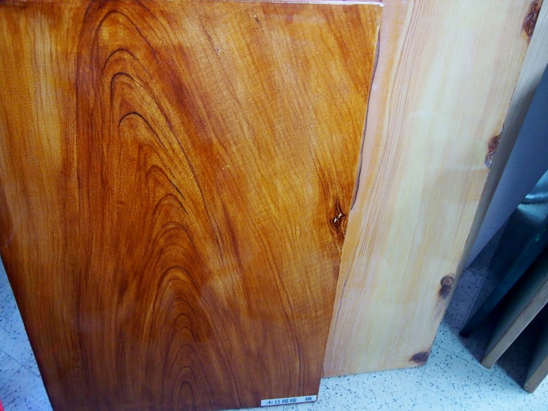 しかし、当時は塗装仕上工が手掛けることはほとんどなく、プリントなどの既製品や美術系学校を卒業したペインターがその役を担っていた。そのため、木暮さんは従来品との差別化を図ろうと「本物よりも本物らしく」することを目指し、木や石などの素材を生成段階から研究した。塗装方法や研磨・噴射する材料を変えるなど試行錯誤を重ね、奥行きや質感まで表現された“他にはない存在感”を生み出すことができるようになった。