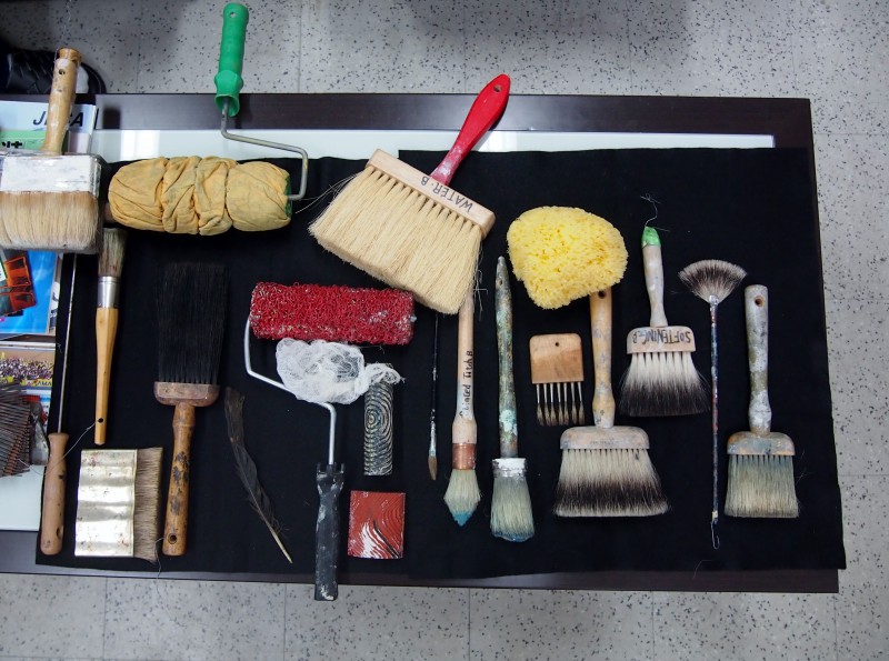 幼い頃から絵を描くことが好きだった木暮さん。「好きな美術を続けたい」と中学を卒業後職業訓練校の塗装科に入学し、実習先の塗装会社に就職した。親方の技を見て盗みながら、日中は就職先の建築塗装の仕事をし、夜は取引先に仕事を分けてもらい内職をした。「人はどこで仕事を見ているかわからない。ワンチャンスをものにするため、人の3倍は仕事をした」。