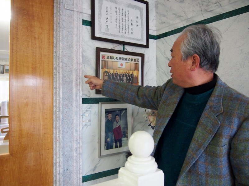 現在、経営する木暮塗装では奥さんが総務を、次男が職人を勤めるほか10人の社員が働いている。幼いお孫さんも毎日のように顔を出すアットホームな雰囲気の中、職人の技と芸術的感性が融合した技術が日々磨かれている。「海外では職人がデコラティブペイントを手掛けることが一般的。日本でも下地作りの技術を備えている職人にその技術を身に付けて欲しい」。